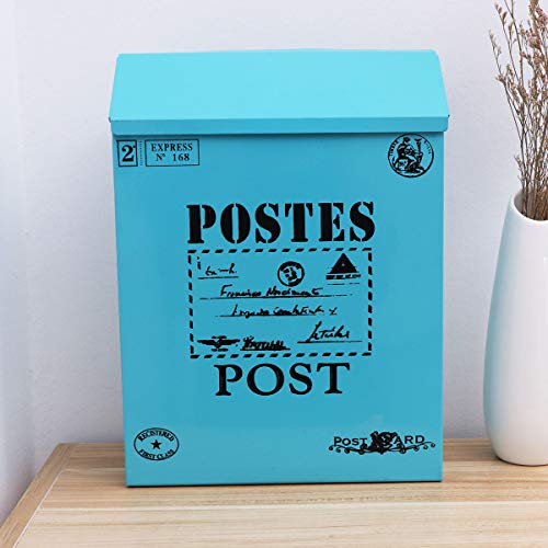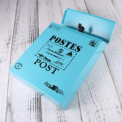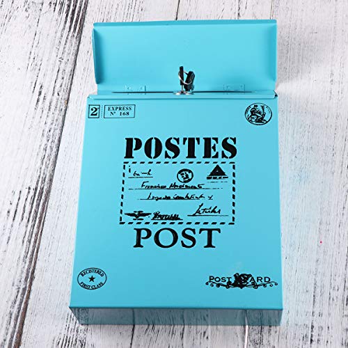 Vosarea キー付き ポストボックス 壁掛け ヴィンテージ アイアン オーナメント(ブルー)