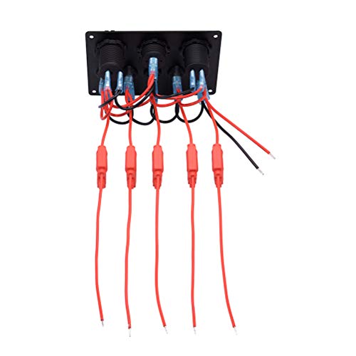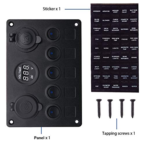 Vosarea 5ギャングロッカースイッチパネル2.1AデュアルUSBポートソケットデジタル電圧計シガレットライターライトインジケーターコントロールパネル(ブルーライト)