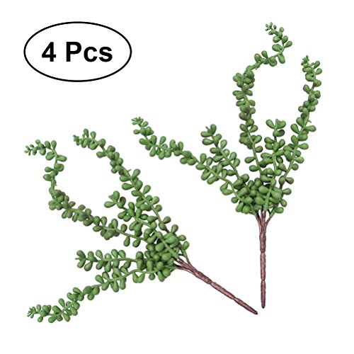 Vosarea 4個の人工的な多肉植物真珠の多い緑のぶどうの花ぶら下がった籐のシミュレーション真珠の吊り紐バスケット植物の恋人家の庭の装飾35x25cm