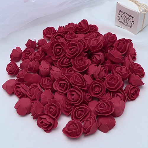 Vosarea ローズ バラ 薔薇 造花 ローズヘッド 花びら 人工泡 ダークレッド ローズフラワー 頭の花 ロマンチックな雰囲気を加え ウェディングの装飾 DIY 工芸品 3.5cm 100ピース