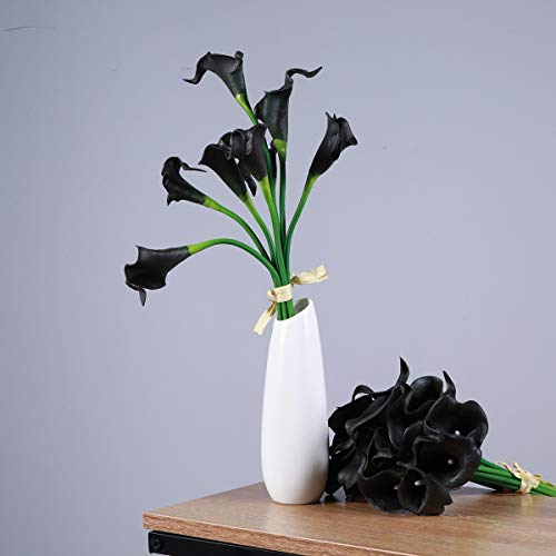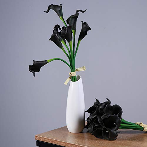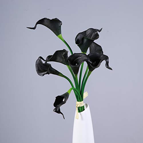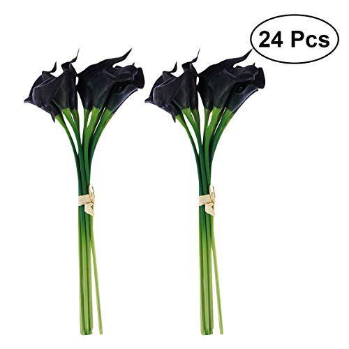Vosarea 24個ミニ人工カラユリブライダル結婚式の偽の花パーティー装飾ブーケPUリアルタッチフラワー(ブラック)