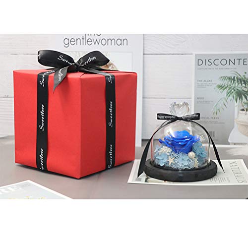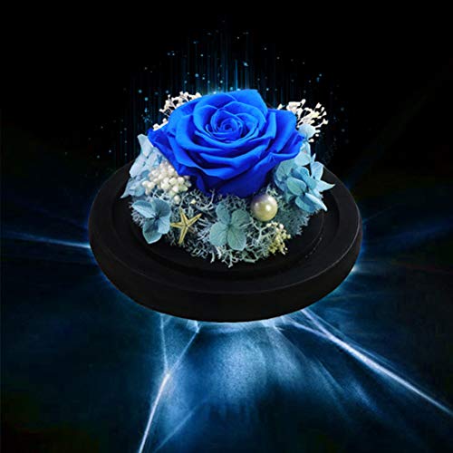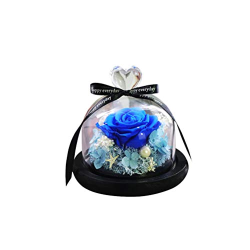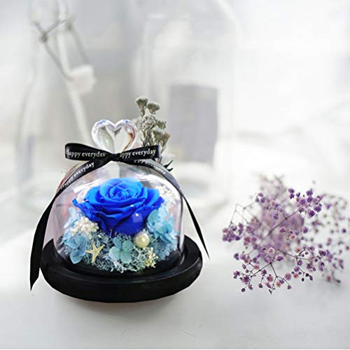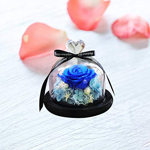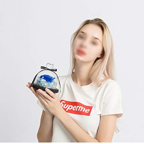 Vosarea 永遠の花 プリザーブドバラ フラワー 花 ガラスカバー 枯れていない ローズフラワー 妻 母 女性 彼女 恋人 結婚記念日 誕生日 プレゼント 贈り物(青)