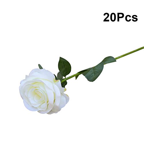 Vosarea 造花 ローズ バラ 薔薇 人工ローズ シルクフラワー シミュレーション ウェディングパーティ フェスティバルの装飾 20ピース(ホワイト)