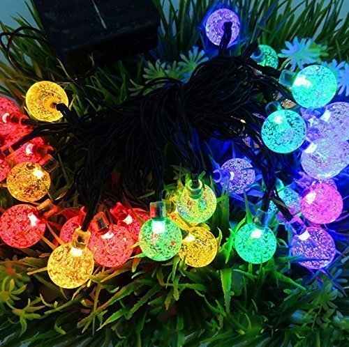 KuGi イルミネーション ソーラー LEDライト 丸い形 長さ6m 30個led電球 防雨 防水IP65 室内室外 飾り ランプ ソーラー充電式 電気代不要 結婚式 学園祭 ガーデンパーティー フェンス パティオ イルミネーション クリスマスツリー パスの風景 庭装飾 などの飾り用 レッド+ブルー+グリーン+黄色