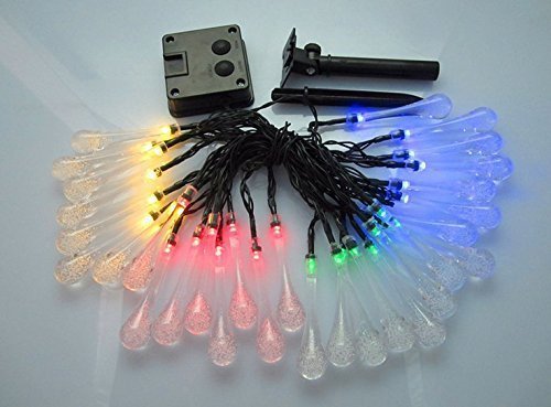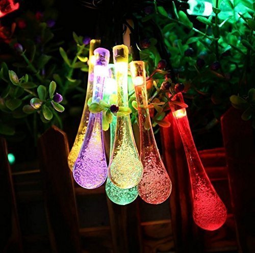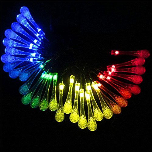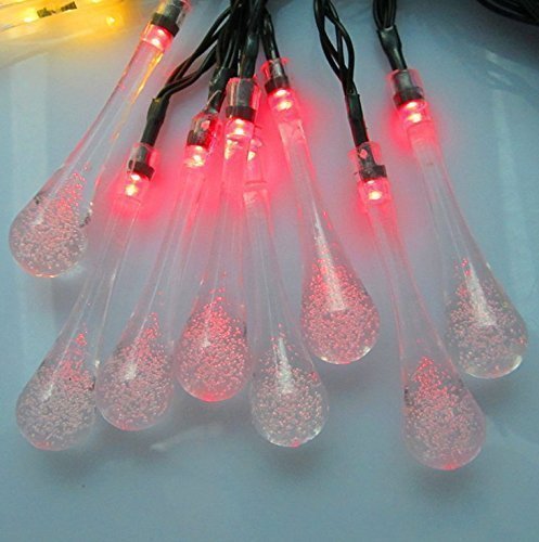 KuGi イルミネーション ソーラー LEDライト しずく形 長さ6m 30個led電球 防雨 防水IP65 室内室外 飾り ランプ ソーラー充電式 電気代不要 結婚式 学園祭 ガーデンパーティー フェンス パティオ イルミネーション クリスマスツリー パスの風景 庭装飾 などの飾り用 レッド+ブルー+グリーン+黄色