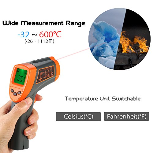 Vuage(TM) -32-600C 赤外線温度計12:1非接触温度テスターLCD温度計+バックライトC / F調整放射率
