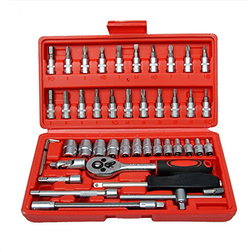 Vuage(TM) JAKEMY精度46で1車の修復ツールラチェットトルクレンチコンボツールキット、自動修復ツールセット1/4インチソケットセット
