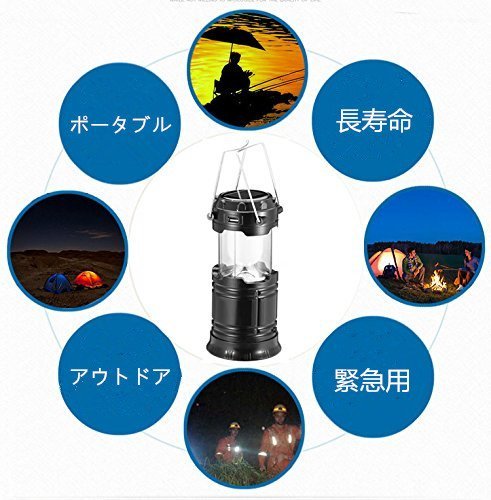 - ★【2つの照明方法】折りたたみ式ランタンで、それを伸ばすと、ライトが点灯し、戻ってくると光が消えます。ポータブルので持ち運びが便利で、フックで簡単にテントに掛けることもできます。そのランタンはボタンがあって、一般的の懐中電灯と使用でもいいです。