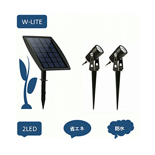 W-LITE ソーラーライト スポットライト パスライト 2LED ガーデンライト IP65防水 景色照明 ライトアップ 防犯 庭園灯 太陽光 高輝度 設置簡単 夜間自動点灯 省エネ 充電式 車道 庭 芝生 歩道 玄関(電球色)