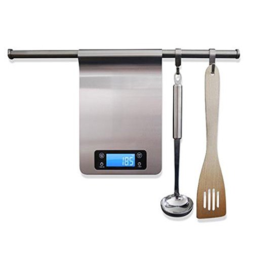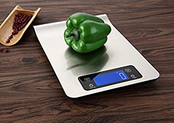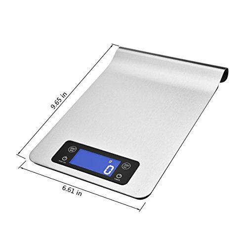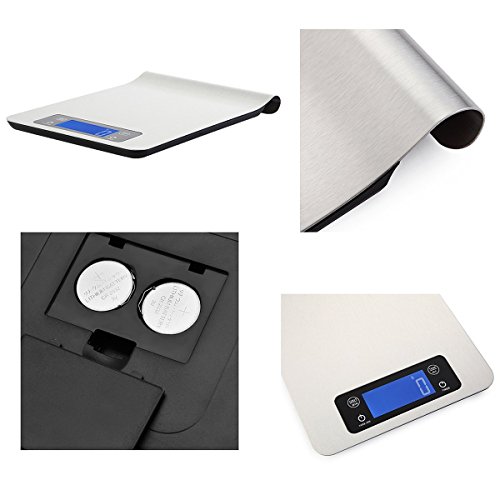 waoawデジタル多機能食品キッチンスケール11lb 5 kg、シルバー、ステンレススチール、カウントダウンタイマー付き、バックライトLCDディスプレイ(電池付属)