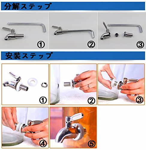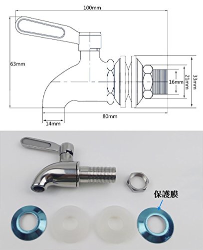 仕様: サイズ:長さ100*高さ58*厚さ26mm 継ぎ目:16mm 重量:約155g 素材:ステンレス鋼 素材がステンレス素材のため、長時間水分が付着している状態でも、錆びる恐れがありません。こまめに本体の水滴を拭き取るのには必要ありません。安心に使用してください。 注文前に継ぎ目のサイズを確認してください。 取り付け方法: 1、 画像のように分解してください。 2、蛇口は容器の内部に差し込みます。 3、容器の内部でシリカゲル圏を付けます。 4、内側のナットを手で固定し、きつくなるまで蛇口部分を時計回りに回して下さい。 5、完成します。