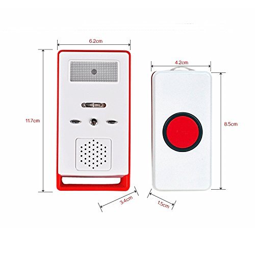 WAYCOM 180m(590 フィート)範囲 ワイヤレス遠隔呼び出しボタン 介護者 個人用ポケットアラームメッセージ セラピスト 警告ブザー ナースコール (1*リモートレシーバー+1*r赤色の呼び出しボタン)