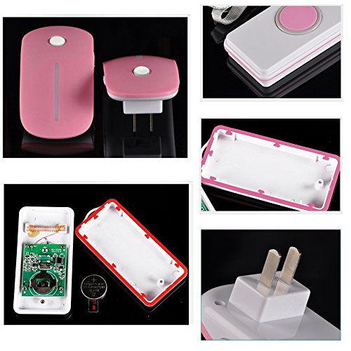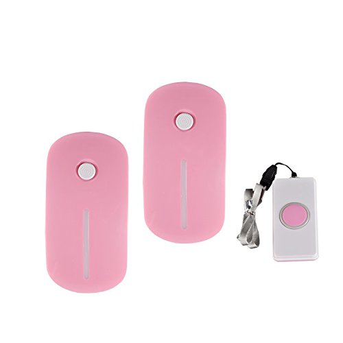 WAYCOM 遠隔ワイヤレス呼び出しチャイムセットメロディー32種類 受信距離180m LEDライト付 家庭看護用 お年寄りや子供や妊婦や身体の不自由な方のSOSボタン (受信機2個 送信機1個、ピンク)