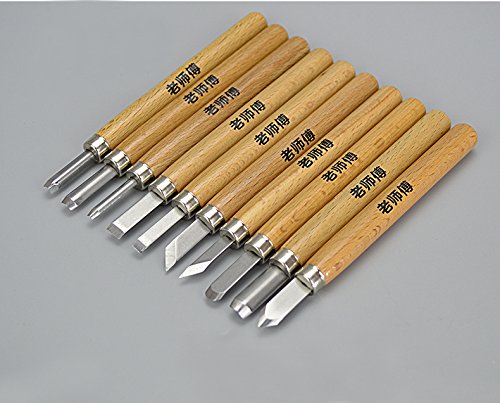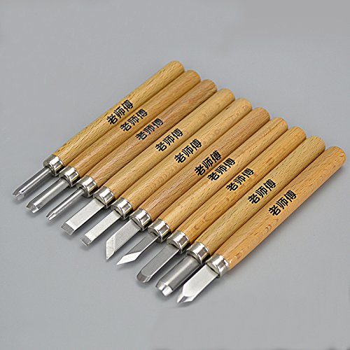 - 丸刃、角刃、平刃等10種のタイプを選べ、木版画や篆刻、DIYや日曜大工、その他図工や美術にも活躍すること間違いなし。