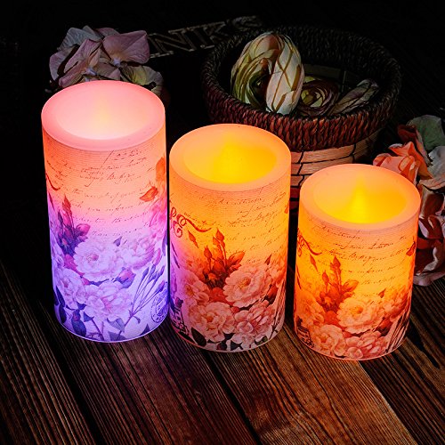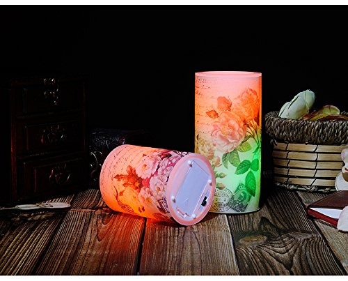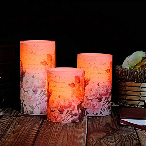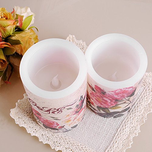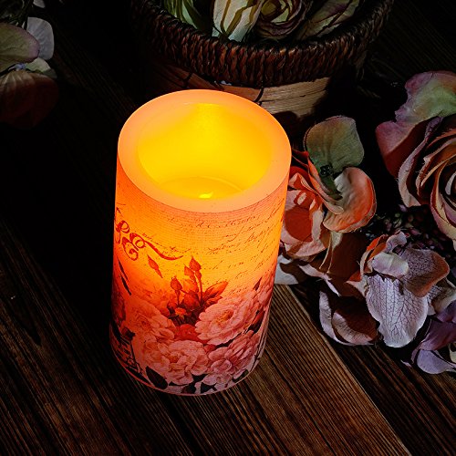 WAYCOM キャンドル led ライト 本物の蝋燭炎のように揺らぐ癒しの灯り 温かなロマンチックなインテリアキャンドルライト 無煙蝋燭 電池式 結婚式 屋外 夕飯飾り 牡丹柄 (Sサイズ)