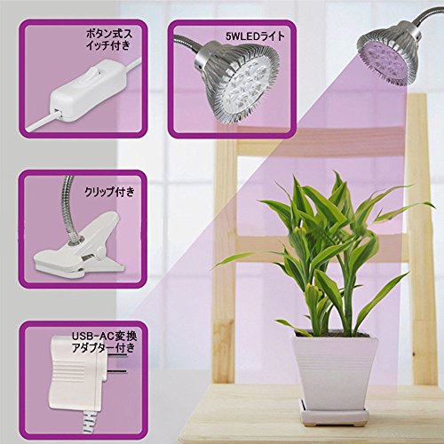 WAYCOM 植物育成ライト 5W LED水耕栽培ランプクリップライトフレキシブルアーム360度調節可能低消費電力で長寿命で明るい照明水耕栽培 室内でも植物がすくすく育つ!