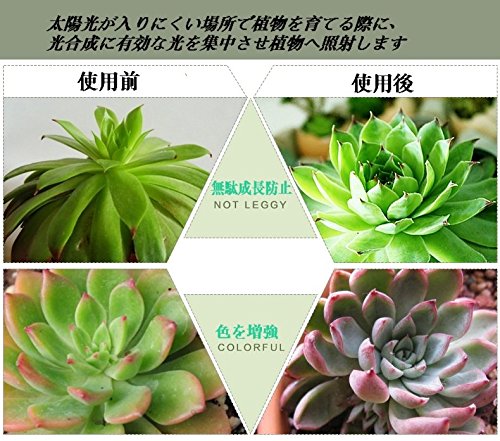 - 室内などのミニ多肉観葉植物育成用LEDは植物の光合成作用と形態形成に適合した波長で植物の生長を早めにして植物の栽培サイクルを短縮し豊作を支援します。植物が必 要とする波長の光りを照射し、植物の育苗、発芽、生長、開花、結実を促進します