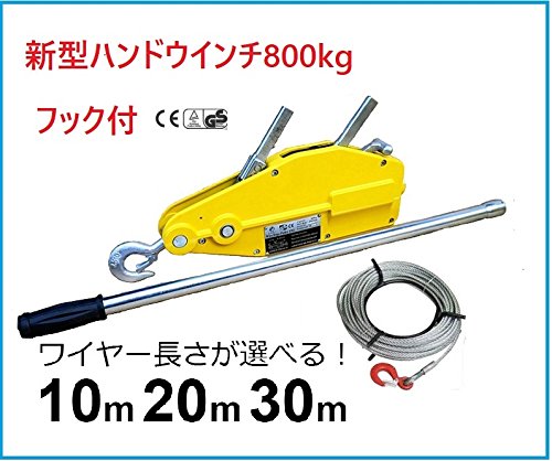 ●高耐久で携帯性に優れたハンディタイプのウインチ(ホイスト)です。 ●小型軽量で様々な角度でのご使用が可能です。 ●ワイヤーロープを本体に巻き取らないため色々な方向に引っ張ることができ様々な場所で使えます ●定格荷重800Kg ● ワイヤー長さが選べる 10m、20m、30m●付属のワイヤー直径は8.3mmです ●安全ピン2個(ハンドルの中に入っています。) ●使用用途は林業、機械の据え付け、重量物作業、緊急時対応等 ●あらゆる方向に引けますので車載して、いざという時のウインチリカバリーに使えます ●レバー1往復で6cm、ワイヤーを送ります ●GS規格(ドイツの工業製品品質保証規格) ●CEマーク(欧州安全規制適合品) ●PL保険(生産物賠償責任保険)加入商品