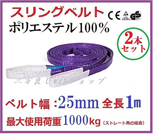 ベルトスリング 25mm巾 × 1m ポリエステルスリングベルト2PCSセット