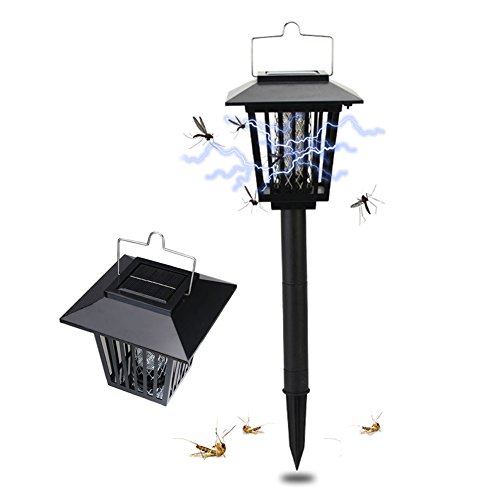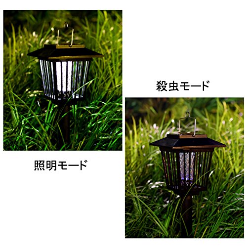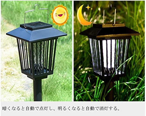 電撃殺虫器 LEDソーラーライト UV光源吸引式殺虫器 照明&殺虫両用 防水 自動点灯 吊り下げ 地面に挿す 省エネ 庭 屋外