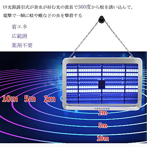 1、虫が好む波長の光を点灯させ、50平方メートル範囲内の蚊などを誘引し電撃して、一瞬全滅で殺虫効果が抜群です。リビングルーム、キッチン、ホテル、レストラン、オフィス、倉庫、寝室、飲食店などの所で適用です。