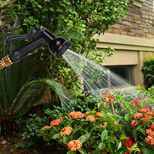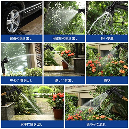 - 8パターン散水ノズル:ノズル最先端を回りして8種類の水形を出せます。洗車、花園用や庭掃除などの様々な用途に合わせる散水ホースです。