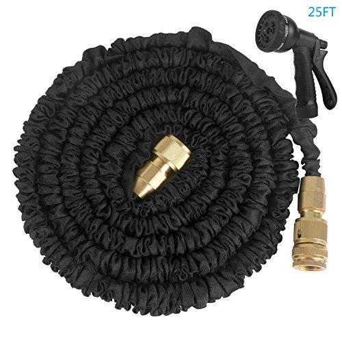 WEINAS 伸びるホース 布カバー 二重構造 マジックホース 3倍に伸びる 8パターン散水ノズル 銅製コネクタ (2.5-7.5m)