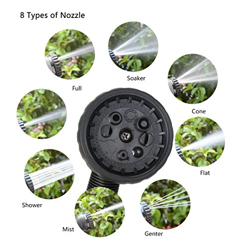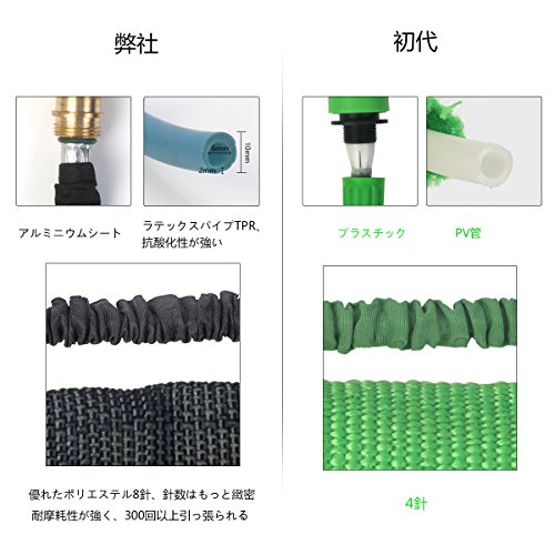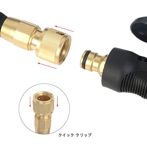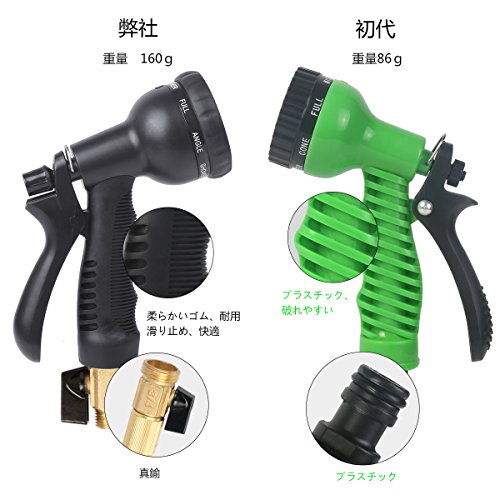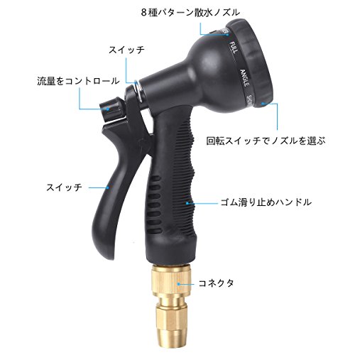 - 【8パターン散水ノズル】ノズル最先端を回りして8種類の水形を出せます。洗車、花園用や庭掃除などの様々な用途に合わせる散水ホースです。