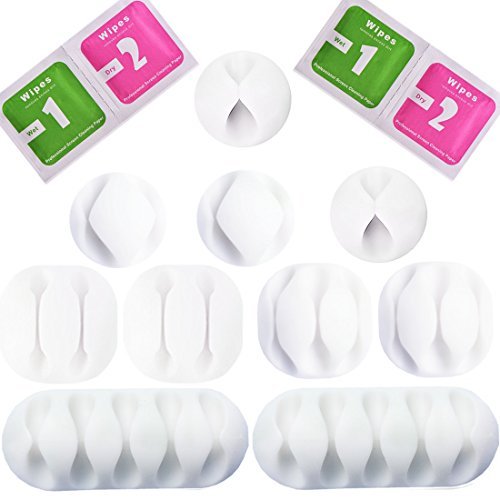 Bukey Cable Clips - Self-Adhesive Desk Cable Organizer Durable Cord Management Wire Holder Wire Management System Pack of 10 White [並行輸入品]