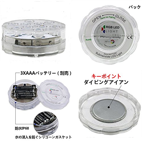 - [多目的]:水中ライトは、水中、プール、ホットタブ、バスタブ、池だけでなく、完璧です。 デコレーション! 彼らは花瓶のベース、ステージ、ジュエリーカウンター、ショールーム、お店、水族館や魚のタンクで使用することができます! 彼らは、花、プール、結婚式、ハロウィン、クリスマスを問わず、様々なパーティーの装飾にも最適です