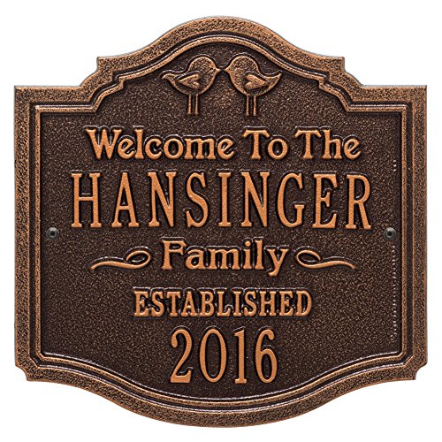 この2つのキスをする鳥がくれた、温かい歓迎上のゲストにパーソナライズされた壁プラーク。個人とエレガント、最高の新築祝いやウェディングのギフトに最適です。sand-castリサイクルされたアルミ板は上げ文字と、耐候性の素敵な緑青を開発する仕上がりが永久に続きの間、年齢に最適。12 " X 12 ",状態で出荷されます。そのため屋内でハングアウトすることができます。取り付けネジ付属7つの仕上げがされています。まで3週間かかります。提供ラッシュしないまたはギフトボックスをオンにします。パーソナライズの1行11文字と年が表示されます。みだらな言葉ないください。