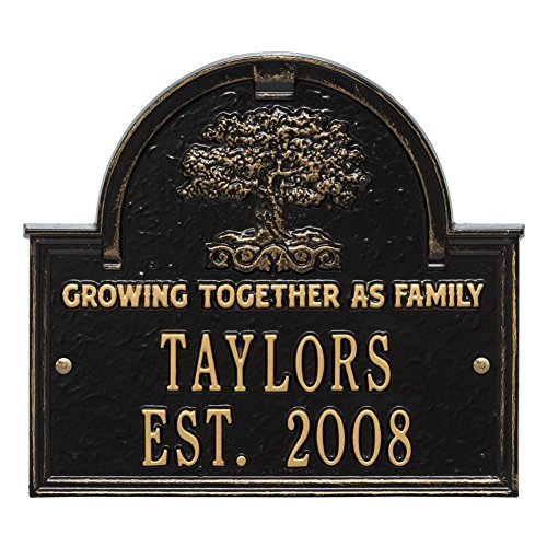 Personalizedファミリーツリーカスタムインドア/アウトドア記念アルミ壁プラーク – ブラック/ゴールド