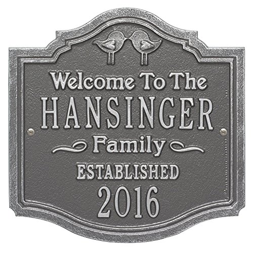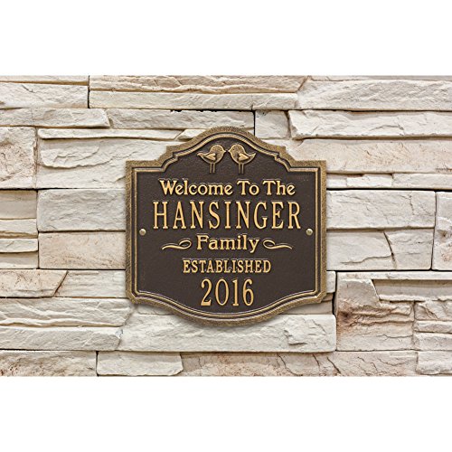 この2つのキスをする鳥がくれた、温かい歓迎上のゲストにパーソナライズされた壁プラーク。個人とエレガント、最高の新築祝いやウェディングのギフトに最適です。sand-castリサイクルされたアルミ板は上げ文字と、耐候性の素敵な緑青を開発する仕上がりが永久に続きの間、年齢に最適。12 " X 12 ",状態で出荷されます。そのため屋内でハングアウトすることができます。取り付けネジ付属7つの仕上げがされています。まで3週間かかります。提供ラッシュしないまたはギフトボックスをオンにします。パーソナライズの1行11文字と年が表示されます。みだらな言葉ないください。