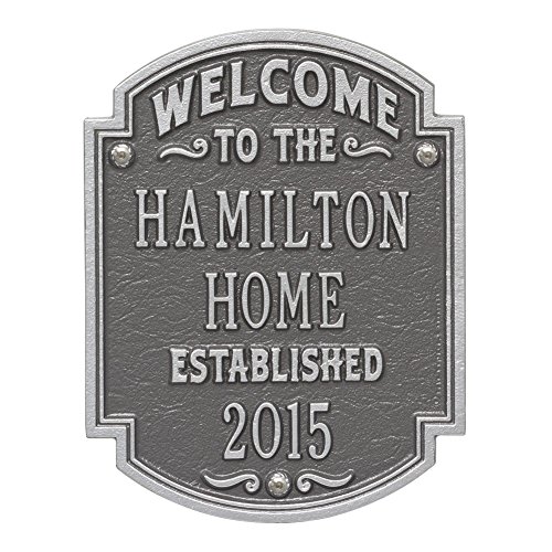 Personalized Welcome to Our Houseカスタムインドア/アウトドアアルミ壁プラーク – ピューター/シルバー