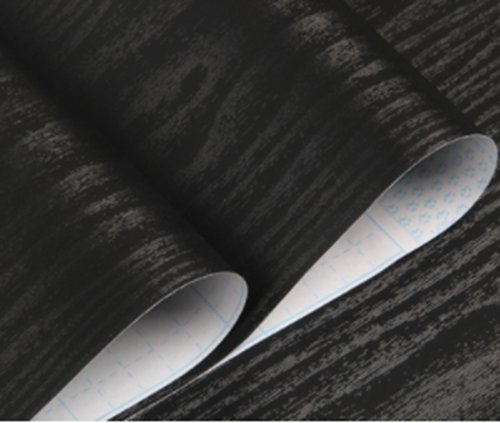 壁紙 簡単 模様替え 貼付シール 木目 柄 白 黒 45cm × 10m ウォールステッカー (黒)