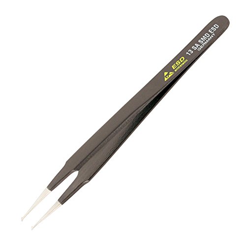 Product Description Features. Static dissipative. Esd safe hypo allergenic. Made from vommaloy. Professional quality. Special stainless steel. Anti - magnetic. Acid resistant. Style - 13 SA. Long - 120 mm.. ESD Style - Micro Tip - Angled 1.6 mm. Wide Flat-1 mm. 1 mm. thick. Item Weight - 0.08 lbs. From the Manufacturer Wiha 44522 ESD safe tweezers, micro tip for chips angled 1.6 x 1 x 1mm. Static dissipative, ESD safe hypo allergenic tweezers made from Vommaloy. Special stainless steel, anti-magnetic and acid resistant.