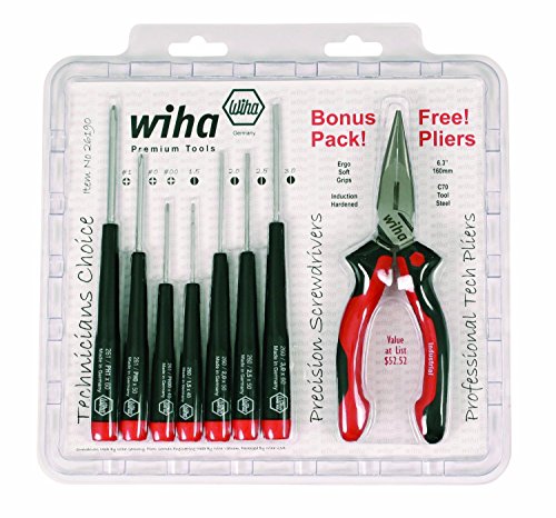 Wiha 26190 Slotted and Phillips Screwdriver Set Bonus Pack with Professional 6.3' Long Nose Pliers, 8 Piece [並行輸入品]