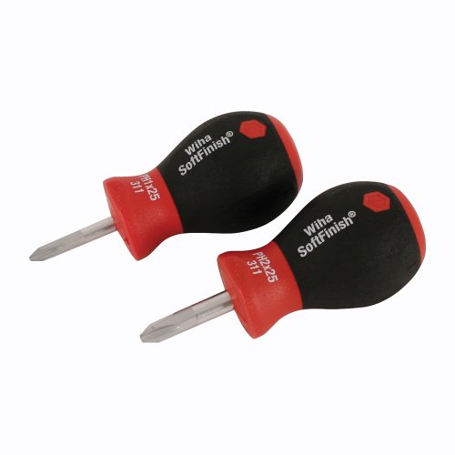 Wiha 31192 Stubby Phillips Screwdriver Set with #1 and #2 by 1-Inch with SoftFinish Handle by Wiha
