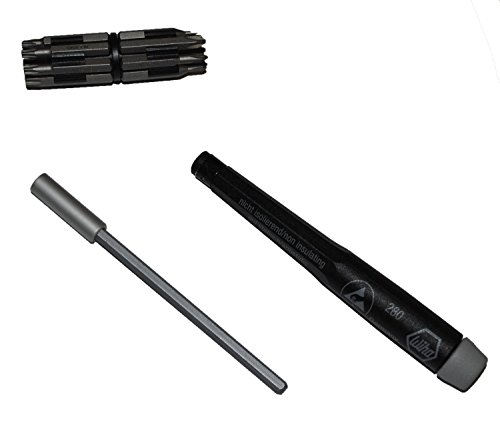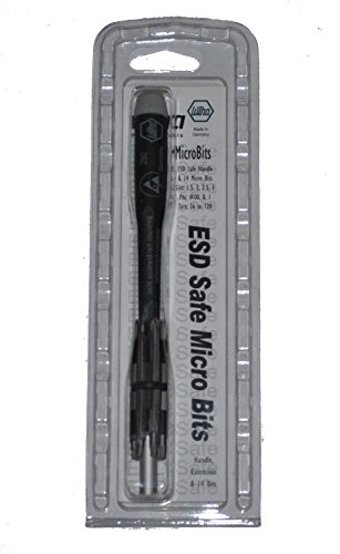 Wiha 75093 sixteen piece ESD safe micro bit set with slotted, phillips and torx bits. Includes ESD safe handle with indexed bit storage ring. Slotted bits 1.5, 2.0, 2.5 and 3.0. Phillips bits 00, 0 and 1. Torx bits T6, 7, 8, 9, 10, 15 and 20. Bit holder 100mm long. Handle ESD safe conductive.