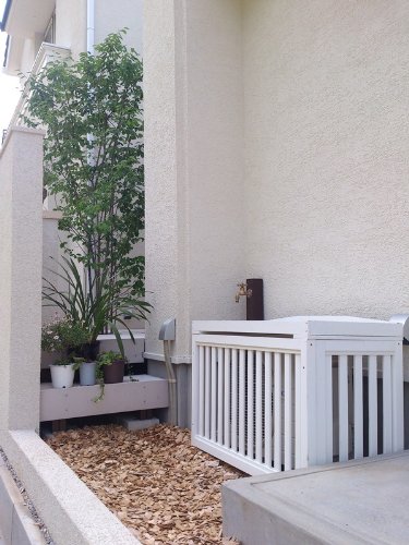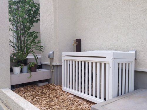 - 室外機カバー匠の特長。 ★モデルルーム、設計事務所様に好評のプロ仕様。 ★大型室外機カバーのため、合わせやすい大きさです。(内寸:幅92cm×奥行41cm×高さ67cm) ★6箇所をビス留めするだけで完成。プラスドライバーで組立可能。 ★使用している米国産ヒバ材※は大変腐りにくく、天然木でありながら高耐久性を確保。 ★厚みのある無垢材を使用。中の桟は板厚13ミリのものを交差させているため、重厚感があり、高耐久。