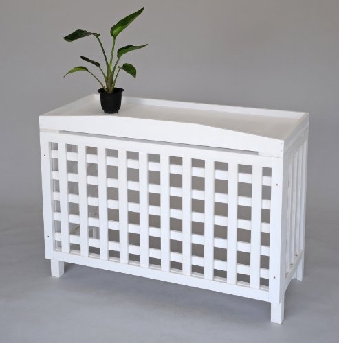 エアコン室外機カバー匠・縦横格子(色:ホワイト)ヒバ材・木製【大型対応】