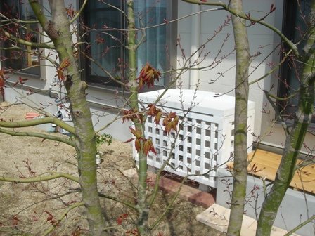 - 室外機カバーはすべて天然木ヒバ材(米国産)を使用しております。厚みや見た目の高級感は、通常の既製品と比べ物になりません。 ※ヒバ材とは・・米国産の無垢材を使用しています。浴槽にも使用されるなど、腐りにくく、抗菌・防虫効果の大変高い木材です。住宅用の土台としても多用されており、薬剤処理が不要な材として知られています。