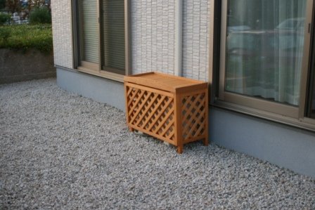 - 室外機カバーはすべて天然木ヒバ材(米国産)を使用しております。厚みや見た目の高級感は、通常の既製品と比べ物になりません。 ※ヒバ材とは・・米国産の無垢材を使用しています。浴槽にも使用されるなど、腐りにくく、抗菌・防虫効果の大変高い木材です。住宅用の土台としても多用されており、薬剤処理が不要な材として知られています。