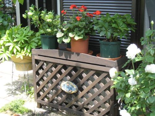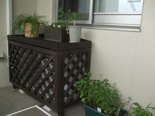 縦横格子よりもファンシーなイメージの斜め格子です。同シリーズのラティス匠にも同じ斜め格子模様がございます。花台には季節の花を。匠による手作り・安心の国産品です。 重厚感あふれるしっかりとした造り。サイズが大きいので合わせやすく、 セットに含まれるビスをプラスドライバーで留めるだけで完成。 殺風景な室外機をインテリア空間に変身させてください! ※受注生産品のため、お届けまで5-15営業日前後かかります。