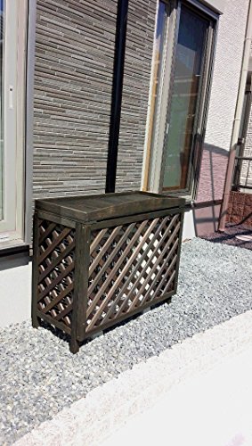 エアコン室外機カバー匠・ななめ格子(色:ブラウン)ヒバ材・木製【大型対応】