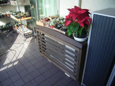 シンプルな「よこ格子」にポイントとして縦木を組み入れました。「よこ格子」だけでは物足りない、というお客様に!花台には季節の花を。匠による手作り・安心の国産品です。 重厚感あふれるしっかりとした造り。サイズが大きいので合わせやすく、 セットに含まれるビスをプラスドライバーで留めるだけで完成。 殺風景な室外機をインテリア空間に変身させてください! ※受注生産品のため、お届けまで5-15営業日前後かかります。