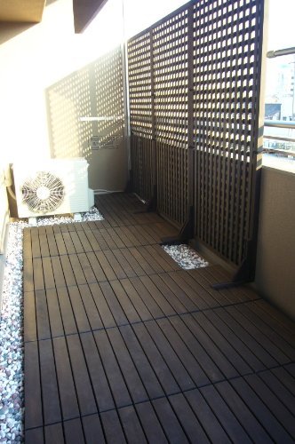 - ラティスフェンス匠はベランダや隣接するお部屋の雰囲気に合わせブラウン、チーク、パイン、ホワイトの4色よりお選びいただけます。ななめ格子、縦横格子、お好きな形でどうぞ。 ※選べる4色×4デザイン:他の色、デザインは「特注ラティスフェンス匠」で検索してご覧ください。