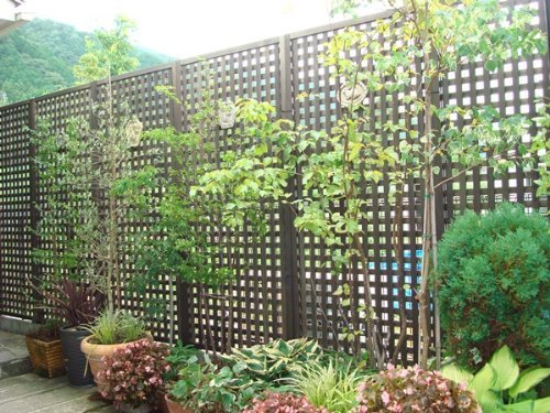 「匠シリーズ」のラティスフェンスはお客様のご希望にあわせて、高さ・横幅とも寸法をオーダーメイドできます。そのため、「微妙に空間が余ってしまってみっともない・・。」なんてことがありません。ラティスフェンスは外部からの目隠しにも効果的です。取り付けはタイラップやシュロ縄、針金を使って簡単にできます。針金は様々な色・素材がホームセンター等で販売されています。フェンスの色に近いものをお選びください。