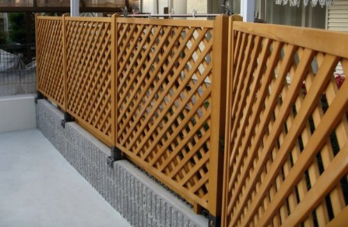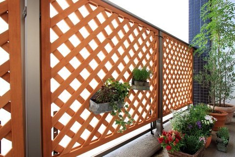 - ラティスフェンス匠はベランダや隣接するお部屋の雰囲気に合わせブラウン、チーク、パイン、ホワイトの4色よりお選びいただけます。ななめ格子、縦横格子、お好きな形でどうぞ。 ※選べる4色×4デザイン:他の色、デザインは「特注ラティスフェンス匠」で検索してご覧ください。