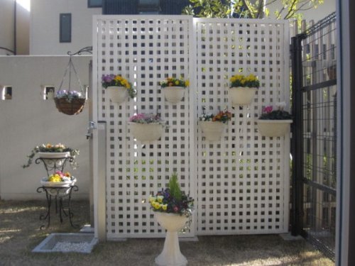「匠シリーズ」のラティスフェンスはお客様のご希望にあわせて、高さ・横幅とも寸法をオーダーメイドできます。そのため、「微妙に空間が余ってしまってみっともない・・。」なんてことがありません。ラティスフェンスは外部からの目隠しにも効果的です。取り付けはタイラップやシュロ縄、針金を使って簡単にできます。針金は様々な色・素材がホームセンター等で販売されています。フェンスの色に近いものをお選びください。